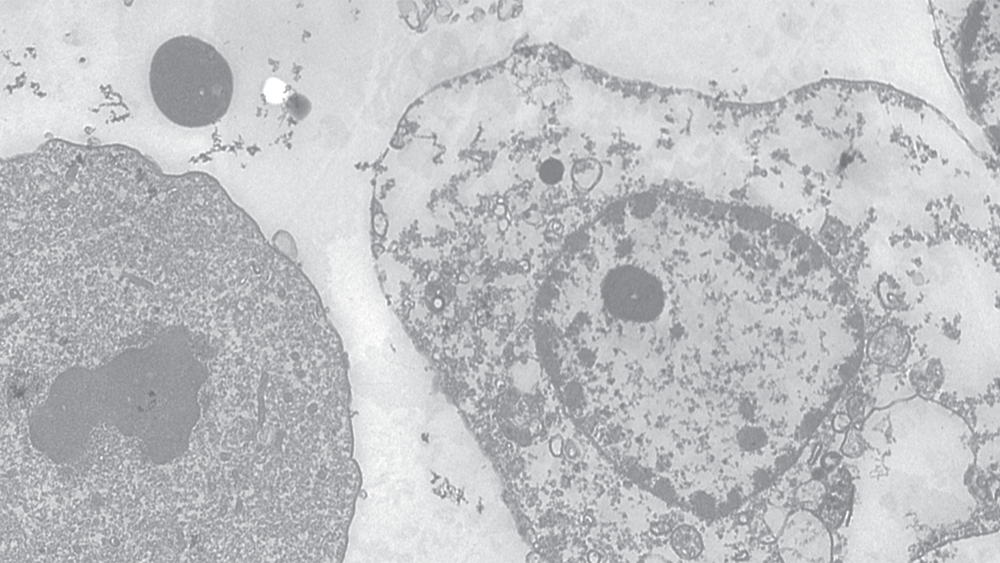 See the ultrastructure of life with the HITACHI T-7500. Cell organelles such as the mitochondria, golgi apparatus, and more appear distinct and identifiable. Advanced microtomy (sectioning a sample slice by slice) allows for detailed realization of the three-dimensional structure of biological tissue.